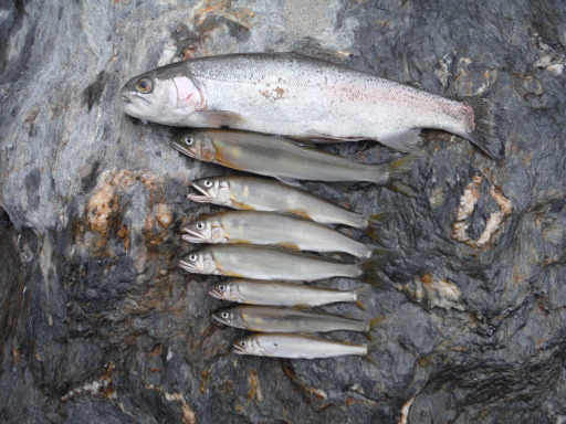 サーフは無理そうなので奥浜名湖のブリームと迷ったけど、スタートが遅れたので2年ぶりに天竜川に鮎の餌釣りに。昼頃のスタートと濁りで厳しい状況だったけど、西川との合流地点で何とかキャッチできました。最大で18.5cm。まさかのニジマス28.5cm も、道糸0.6ラインブレイクせずにランディングできました。