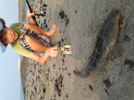 三年生で マゴチと力勝負 釣りあげた ゴリ巻き後の笑顔 頑張った
