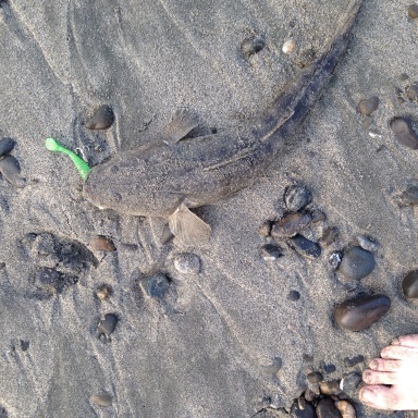 夏のダブルヒット 子供は初サーフヒットマゴチ52センチ パーフェクト