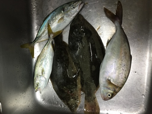 暗い内に、ジグミノーでアジとヒラメ。明るくなってからHシンペンでエソ、ジグでマゴチ。