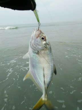 雨なのでサーフはアングラーも少なくポイントは貸し切り状態。バラした後1枚get。その後はソゲ2枚をリリースで雨脚が強くなり終了しました。